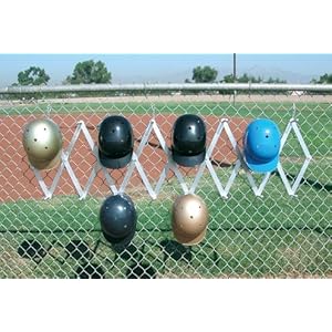 Product Description : This accordion-style baseball or softball helmet rack holds up to eight helmets. Its made of lightweight yet sturdy aluminum. This helmet rack attaches to your dugout fence.