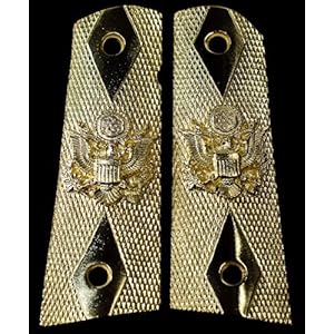Product Description : These custom made grips fit the standard 1911 and are made from solid pewter that has been plated in 24k gold.