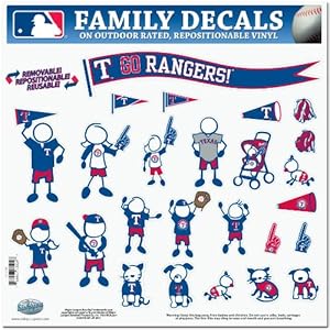 Product Description : Show off your team pride with our Texas Rangers family automotive decals. The set includes 25 individual family themed decals that each feature the team logo. The 11" x 11" decal set is made of outdoor rated, repositionable vinyl for durability and easy application.