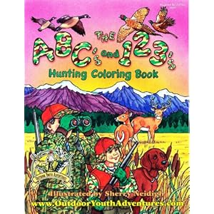 Product Description : Outdoor Youth Adventures ABC and 123 Hunting Coloring Book will be a favorite for you up and coming little hunter. A is for arrow, antelope and antlers. P is for pheasant, pointer and puppies. 3 is for three bears, and on another page, 8 is for eight ducks. The ABC's and 123's have never been this much fun. Your young hunter will be captivated by the hunting related pictures while, at the same time learning about letters and numbers. 48 total pages. Recommended for every young hunter who wants to have fun with their ABC's and 123's. Illustrated by Sherry Neidigh. Outdoor Youth Adventures ABC and 123 Hunting Coloring Book Features: Fun activity with learning in mind Hunting realted pictures Total of 48 pictures Illustrated by Sherry Neidigh